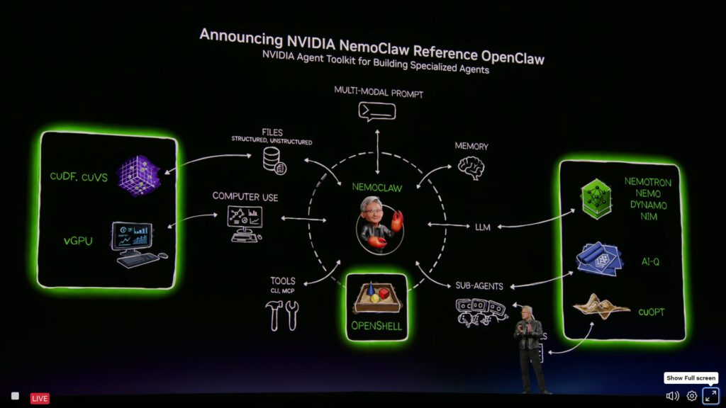 In software and agent ecosystems, an OpenClaw integration represented how Nvidia wants to standardize long-running AI agents: they plan, call tools and APIs, and operate across business workflows with Nvidia models, runtimes, and safety layers underneath. In media production and gaming, Nvidia extends the same stack into real‑time content creation and interactive experiences—using neural rendering, simulation, and Omniverse-based pipelines for asset generation, iteration and deployment.