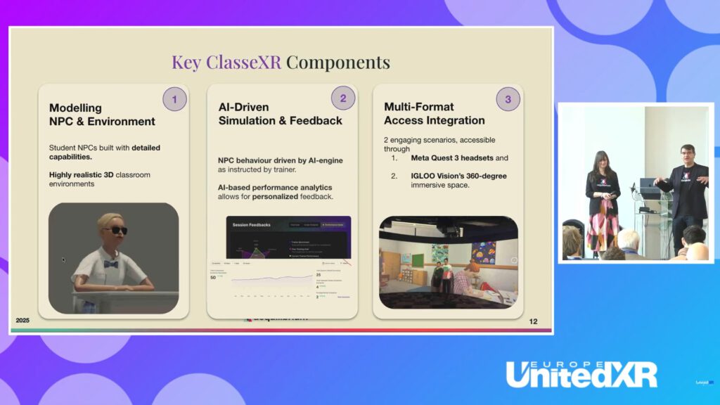 Content-focused initiatives emphasized standardization efforts, with projects such as XR4ED (Horizon Europe) showcasing interoperable XR platforms for education designed to align tools across schools and institutions. Panels discussed EU-driven standards for content portability, metadata schemas, and cross-platform compatibility, aiming to reduce fragmentation in areas such as cultural heritage digitization and training simulations. Side events fostered the formation of consortia around shared XR content pipelines, highlighting progress toward unified formats amid growing AI-enhanced production workflows.